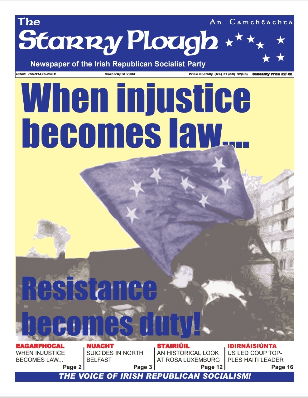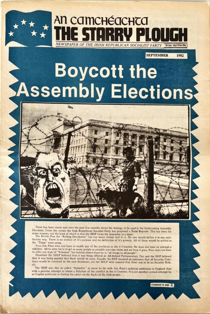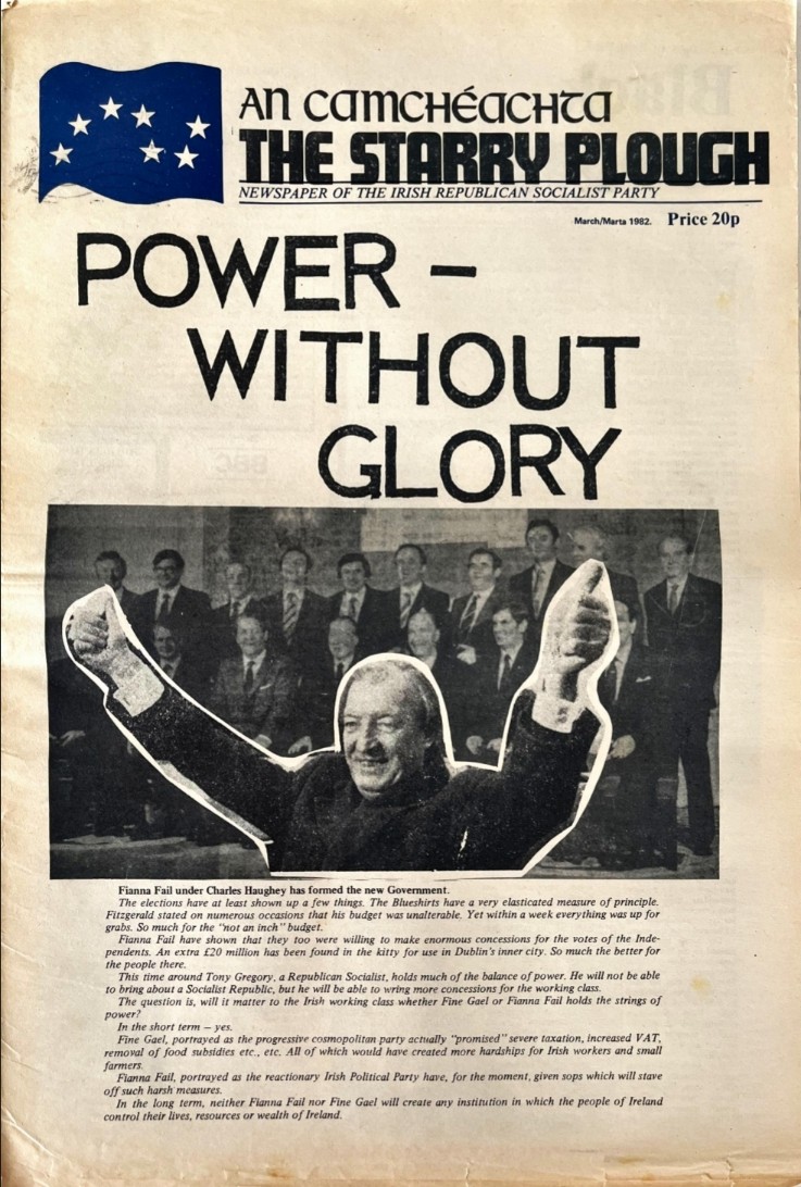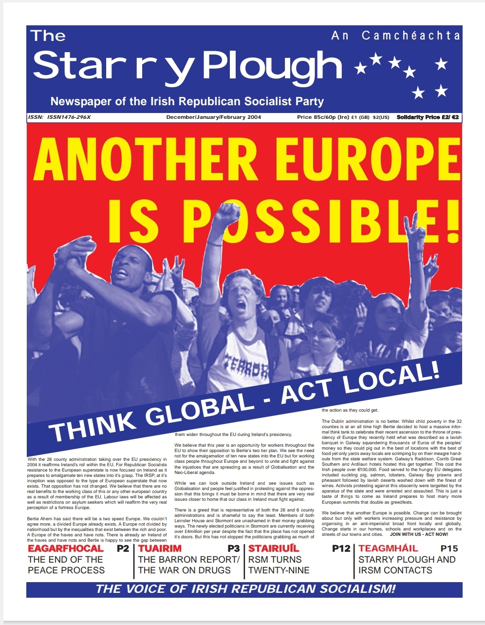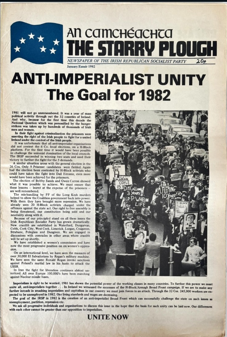 The first edition of the new (IRSP) The Starry Plough was published in April 1975 under the editorship of Mick Ahern. It included details of the first IRSP public meeting (Dublin, 12 February), an editorial on the IRSP, an interview with Seamus Costello, Easter Rising commemoration notices and a statement from the National Executive of the IRSP.