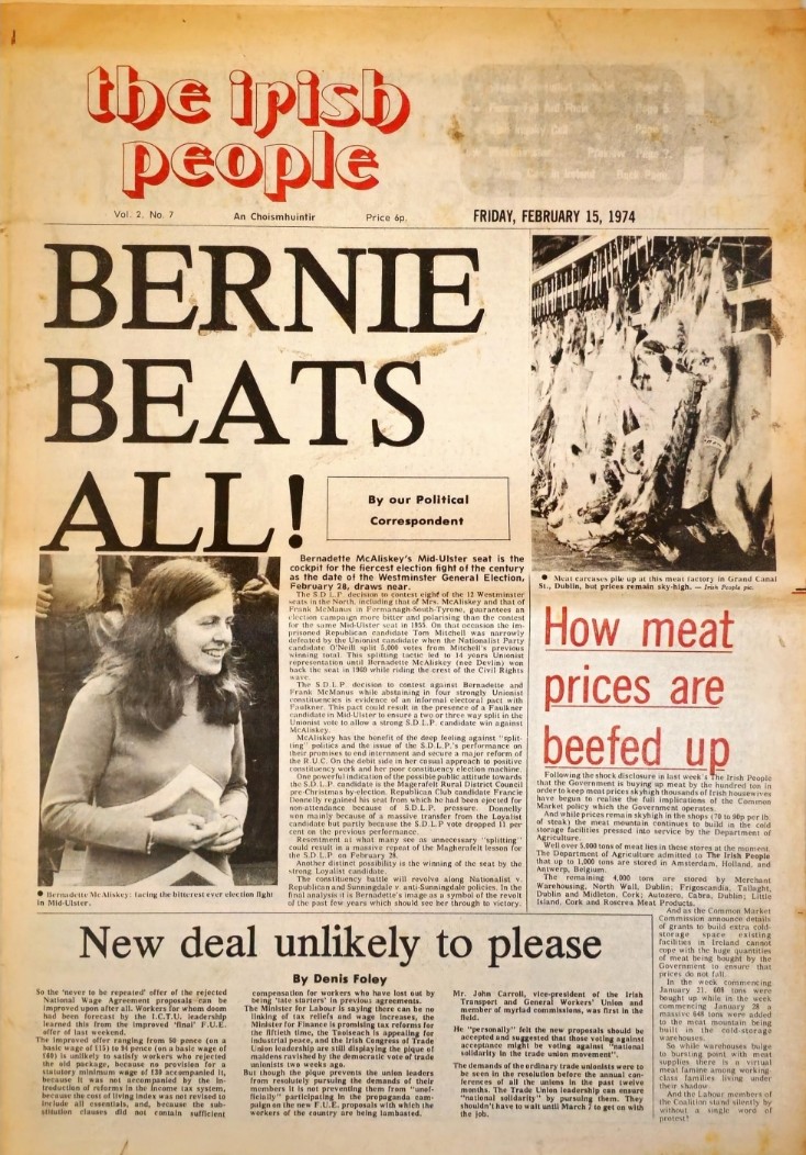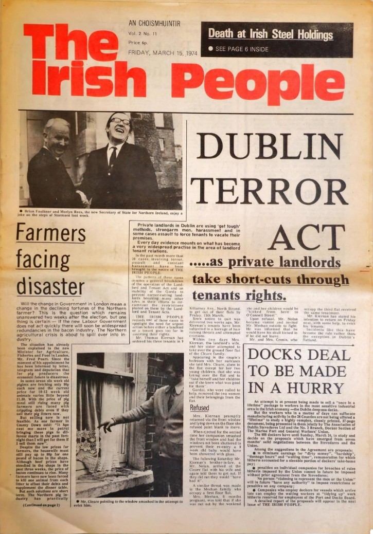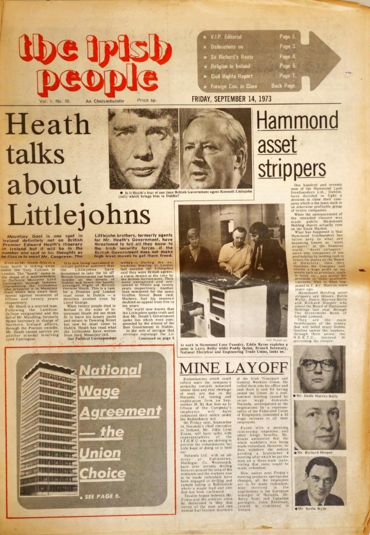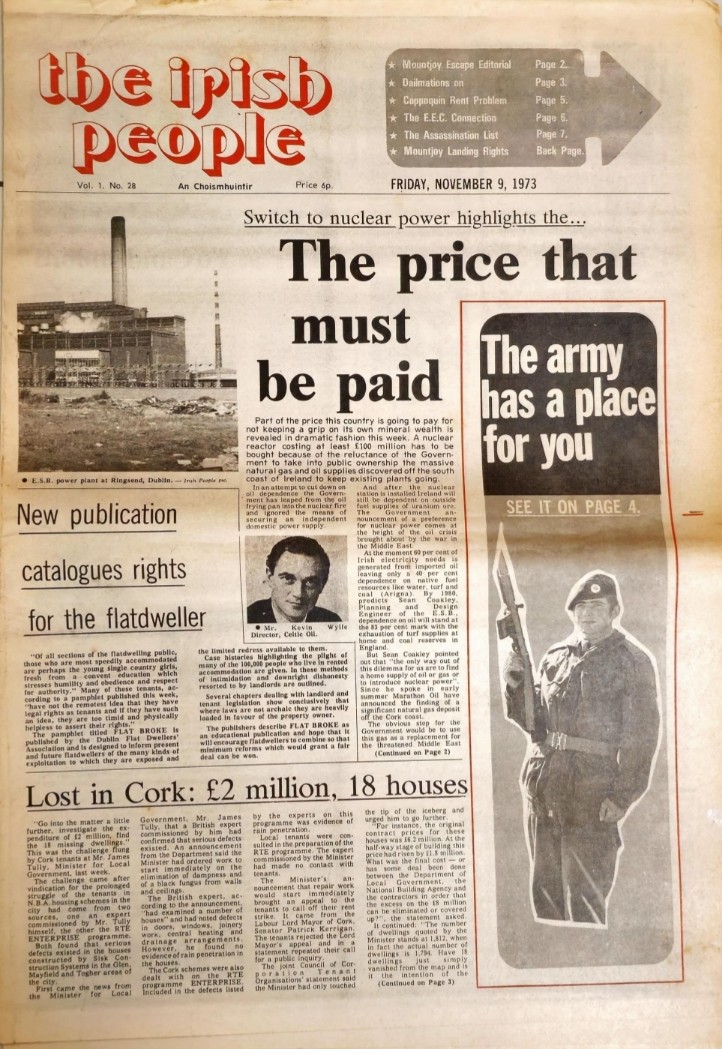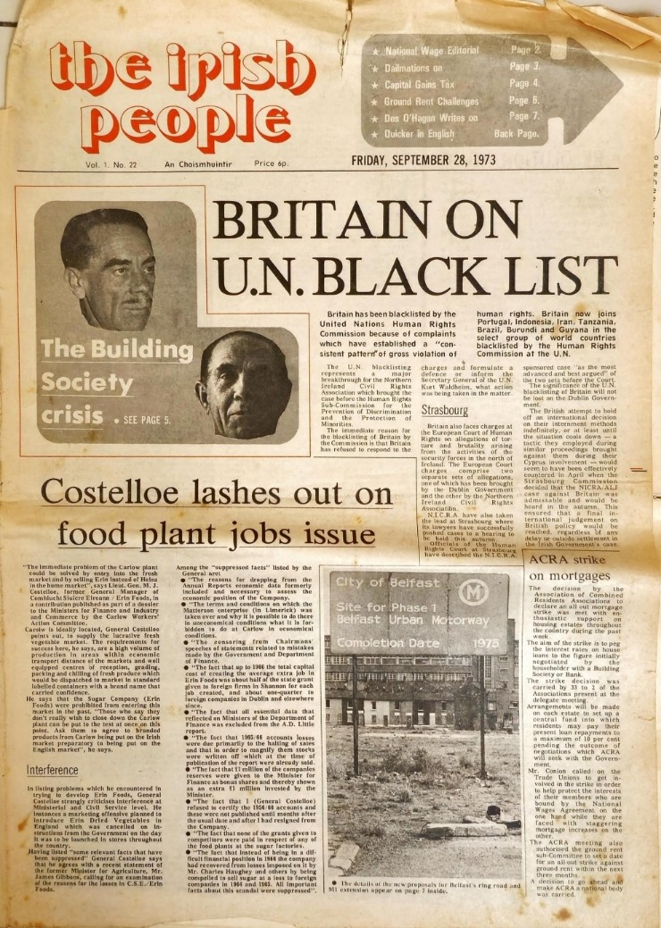 The Irish People was a newspaper of Official Sinn Féin which was first published in 1973. It focussed on topics such as workers’ rights, housing and mainly 26 County politics rather than the situation in the 6 counties at the time.