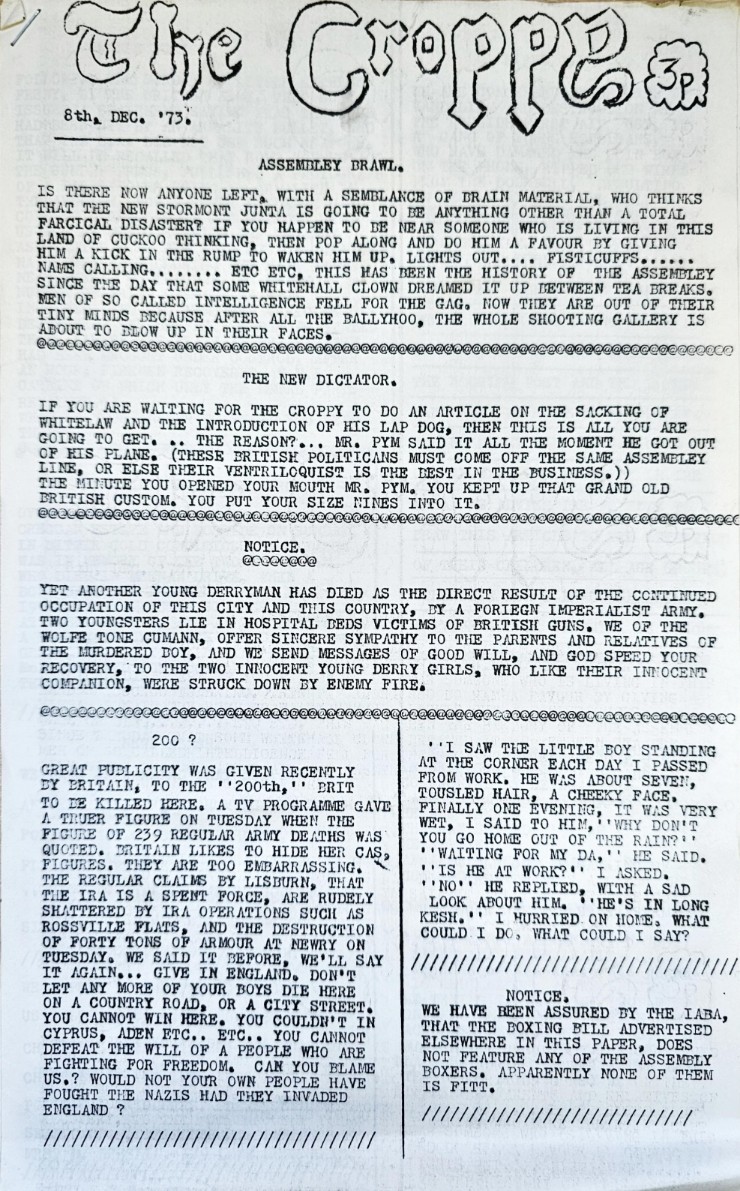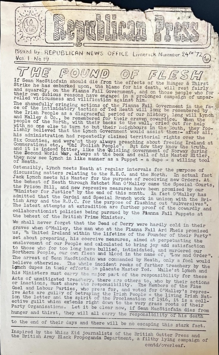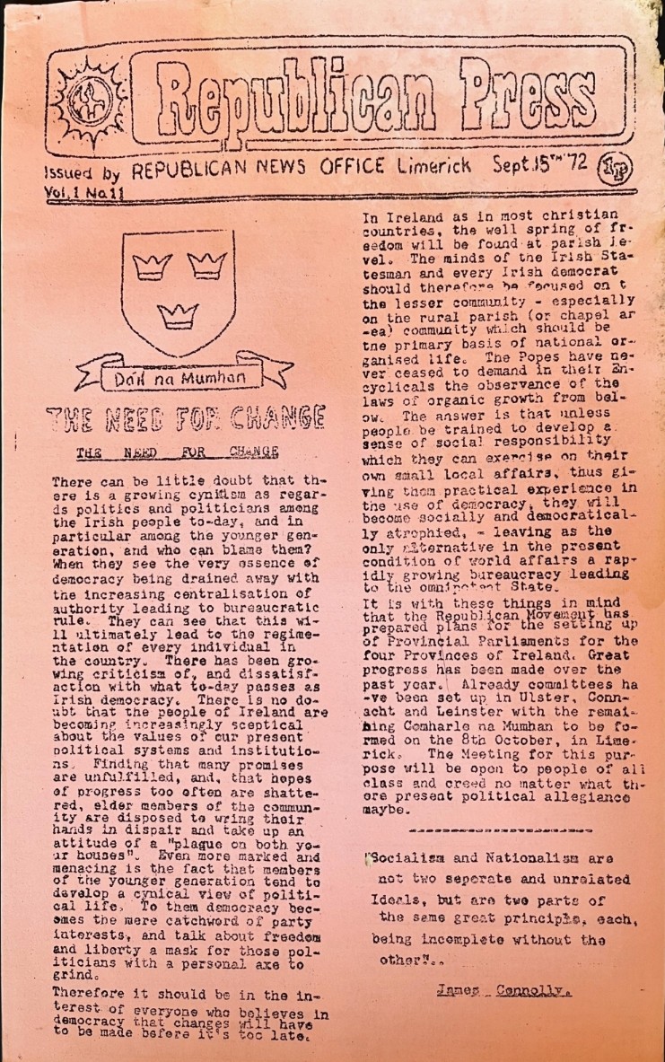The 1970s were a tumultuous decade in Irish history, marked by political upheaval, social unrest, and the intensification of the conflict in the North. Amidst this backdrop, the Provisional movement emerged as a powerful force advocating for Irish unity. While much has been written about the political and military dimensions of this era, one often-overlooked aspect is the role of local Provisional Sinn Féin newspapers in shaping public opinion, mobilising communities, and documenting the struggle on the ground locally.