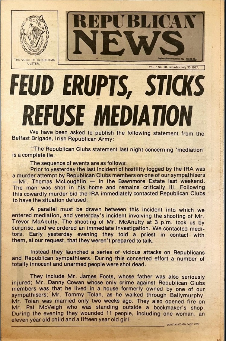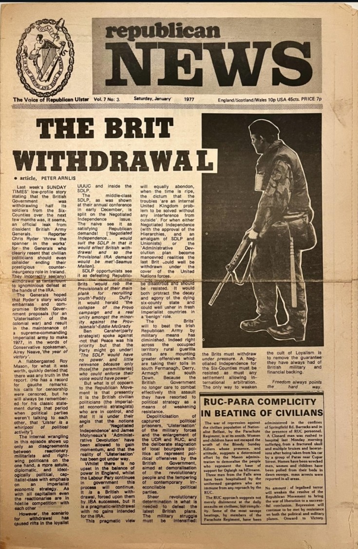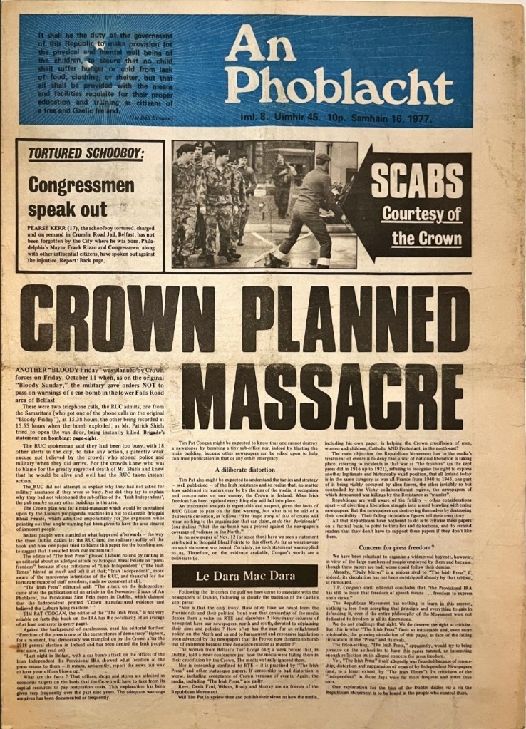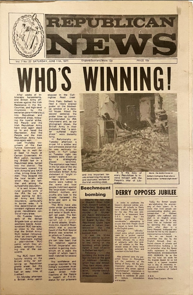 This is the story of 1977 told chronologically through the pages of both An Phoblacht and Republican News.