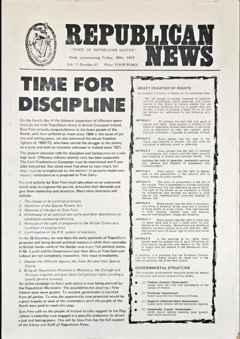 This is the story of 1972 told chronologically through the pages of both An Phoblacht and Republican News.