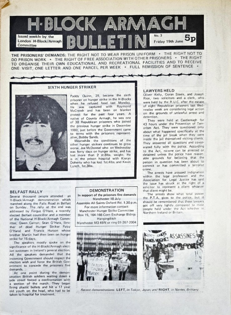 Ireland’s War was produced by the Glasgow Irish Freedom Action Committee which was a breakaway from the Revolutionary Communist Group. They gave uncritical support to both the PIRA and INLA although they withdrew their support for the latter eventually. Click Here to view the collection.
