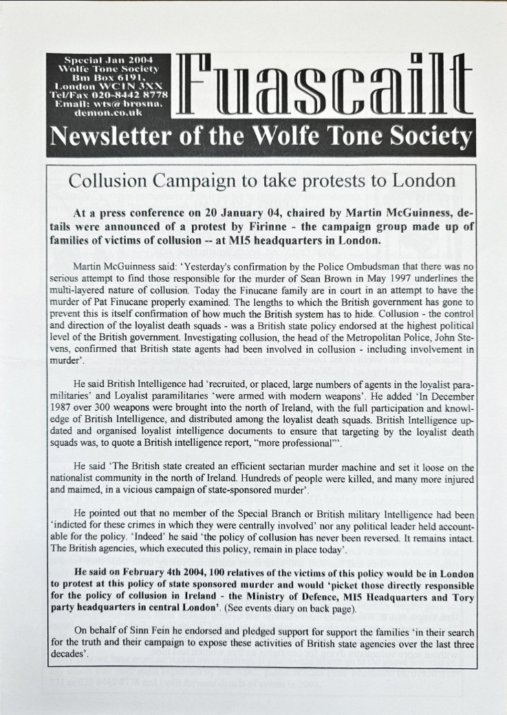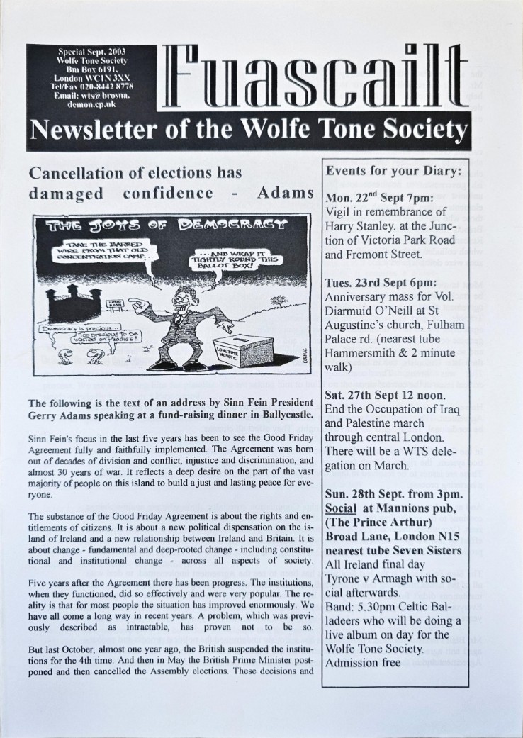 ![]() Fuascailt (September 2003) | ![]() Robert Hamill Newsletter (Autumn 2003) | ![]() Robert Hamill Newsletter (Spring 2003) |
