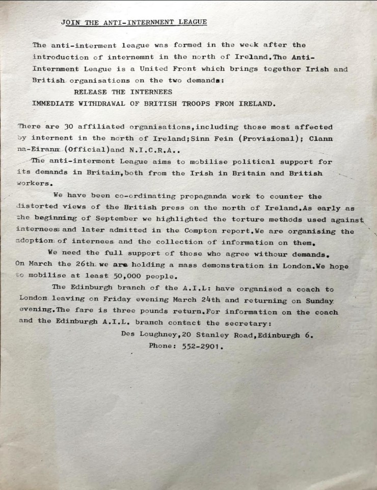 ![]() Anti-Internment League Rally Poster (1971) |