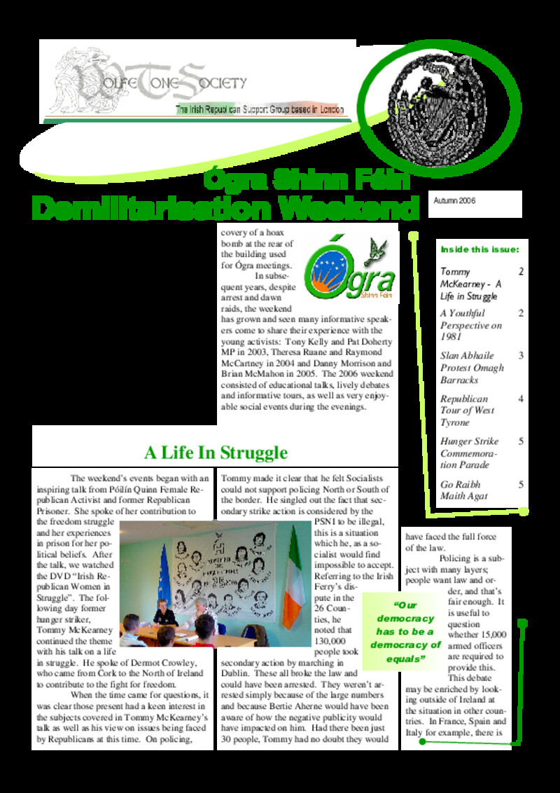 ![]() Annual Bobby Sands and James Connolly Commemoration (1997) | ![]() Fuascailt (Summer 1997) | ![]() Fuascailt (Leaflet 1997) |