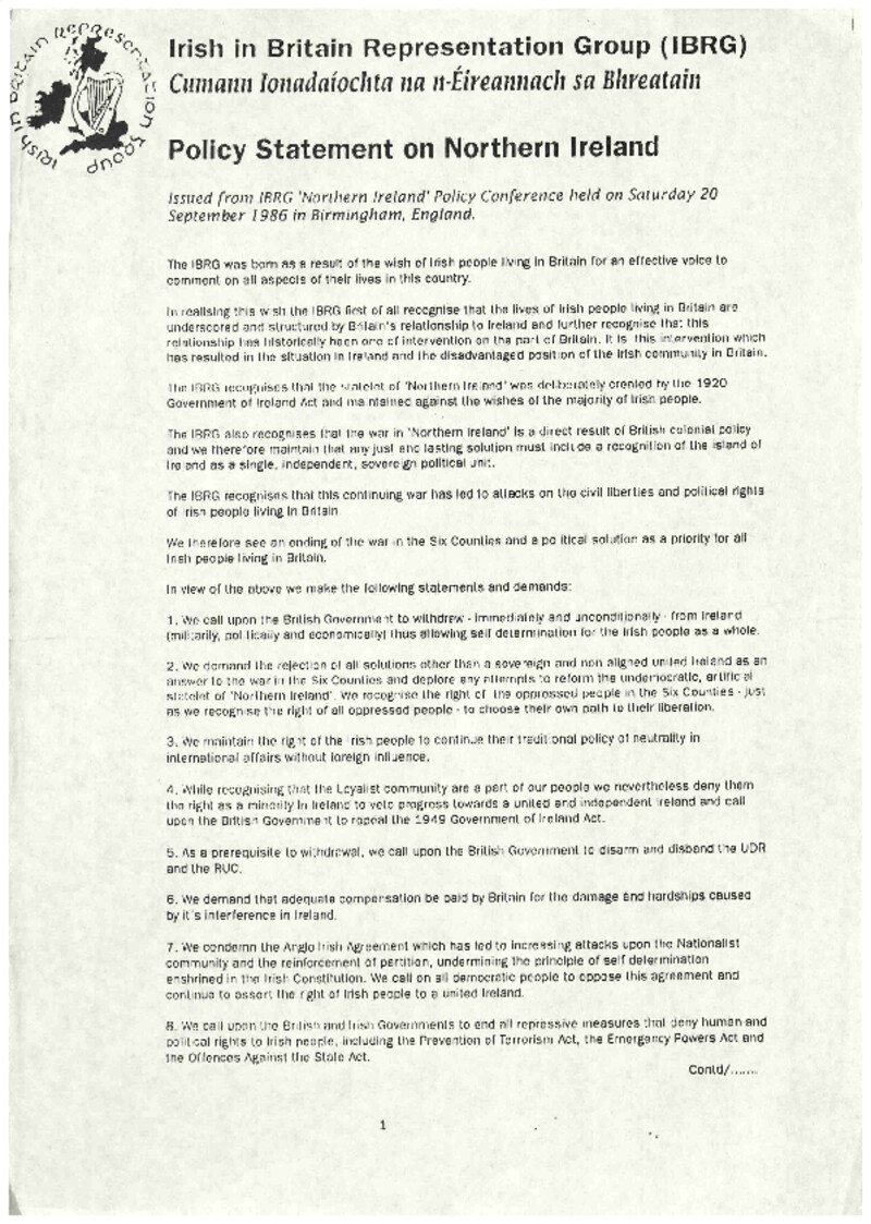 ![]() Troops Out (Dec/Jan 1986/87) | ![]() Policy Statement (1986) |