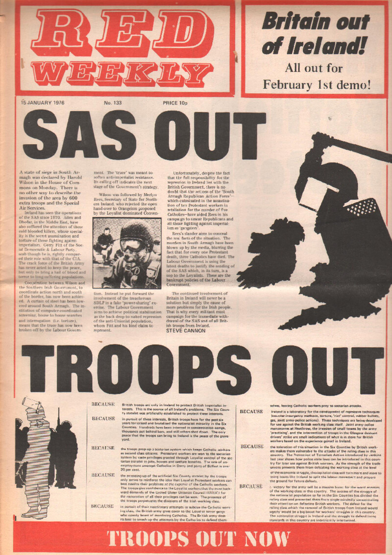 ![]() IMG Says Troops Out Now Leaflet (1976) | ![]() Red Weekly (January 1976) | ![]() Red Weekly (August 1976) |